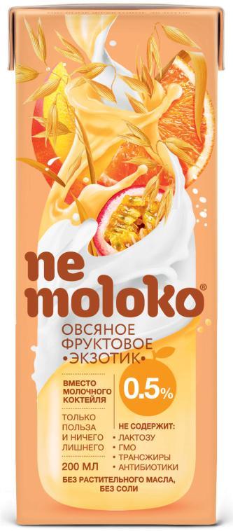 вода, овсяная мука, концентрированный апельсиновый сок, манговое пюре, концентрированный сок маракуйи. Продукт может содержать следы орехов и сои.